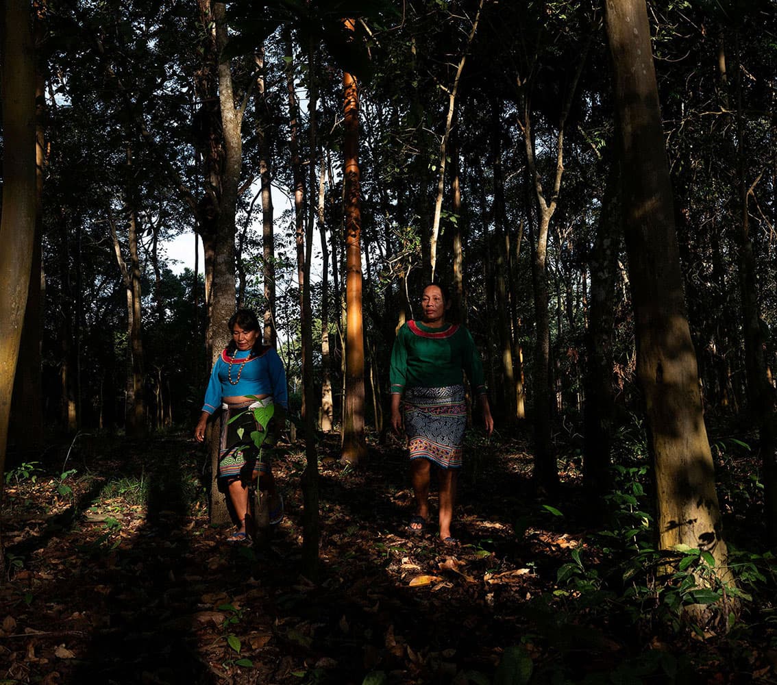 “Teníamos muchas ganas de proteger nuestro bosque y a nuestras familias. Nos dimos cuenta que habían especies que ya no veíamos. Nuestros antepasados vivían más de 100 años, comían todo sano, y eso queremos para nosotros”, cuenta Margarita Cumbia, una de las 8 mujeres que pidieron en 2014 a la asamblea un espacio dentro del Bosque de Reserva Comunal de casi 532 hectáreas para crear este laboratorio al aire libre.